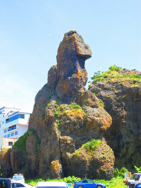 遊覧船乗り場近くにはゴジラ岩もあります。