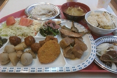 17時前に乗船し、風呂に入ってさっぱりした後は、フェリーで初めてレストランでバイキング。