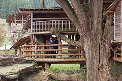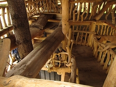 渡り廊下、広間、階段、梯子、オブジェやらいろいろなものがありますが、階層構造になっていて、ツリーハウスというよりもツリーマンションといった感じです。