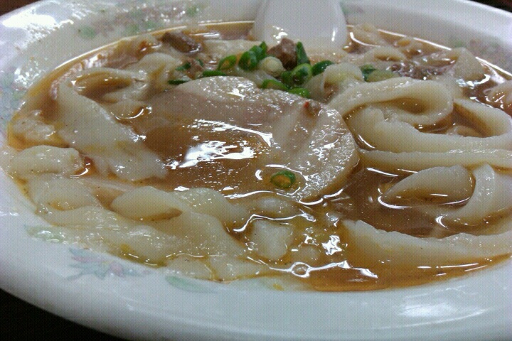 確かに削ったようにちょっと太めないびつな麺でしたが、表面がざらついていてピリ辛なスープとよく合ってました。