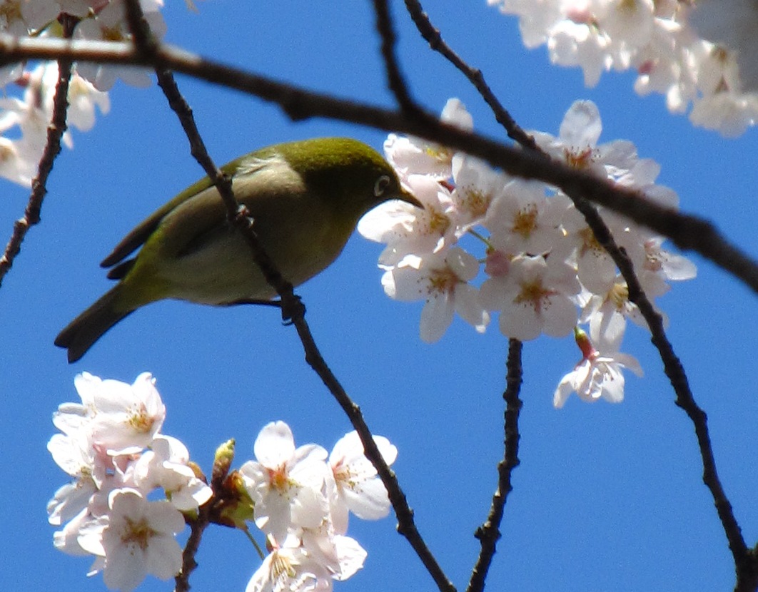 春らしく、鳥が蜜を求めて飛び回ってました。