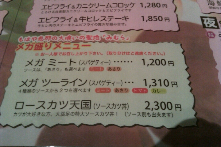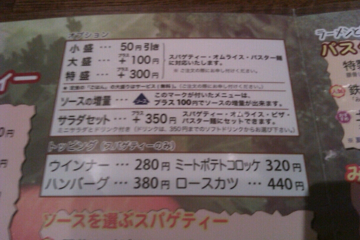 スパゲッティーの量は選択可能なシステムになっていて、メガ盛メニュー・・・そして、裏メニューにはギガメニューもあるようなので、大盛好きにも安心なお店?になってます。