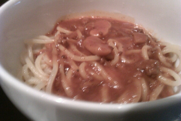 スパゲッティーがどんぶりで出てきたのには、ちょっと驚きましたが、皿に盛ってあったら、普通に1人前かな?