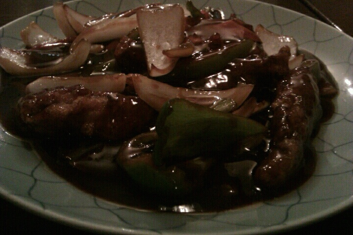 黒酢酢豚は酢が効きすぎで、鼻につく匂いと酸味で残念な感じ