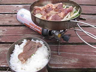 セイコーマートで味付ジンギスカンとカット野菜を買い込んで、お手軽ジンギスカン。