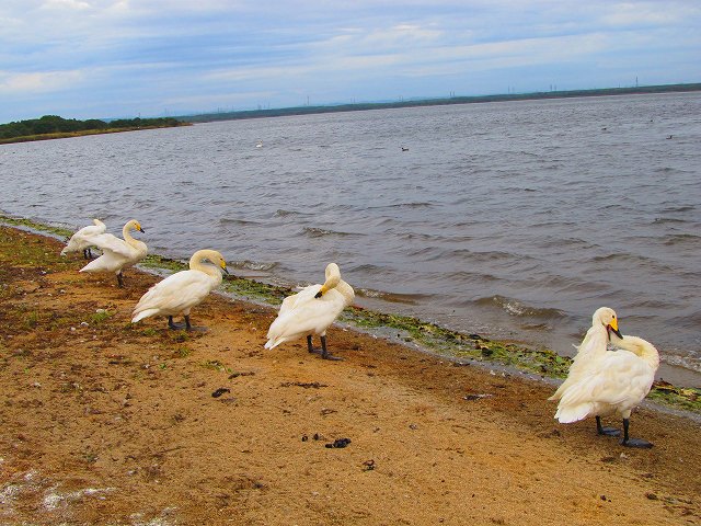 道の駅ウトナイ湖でハクチョウ観察。
