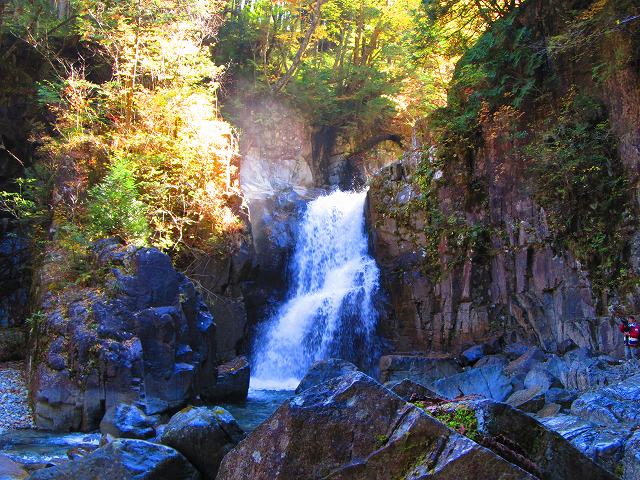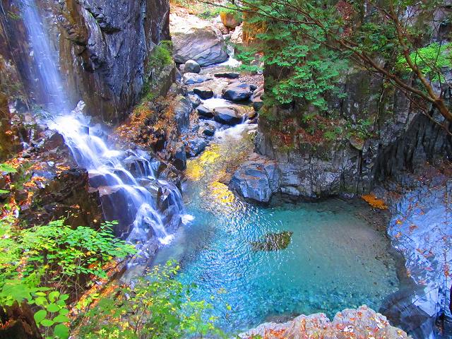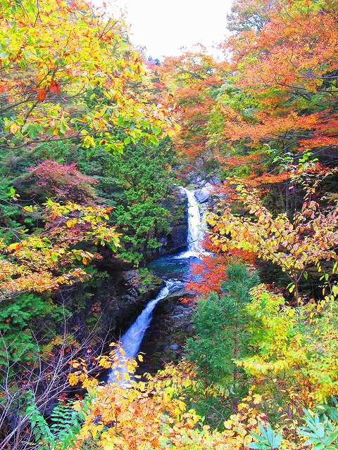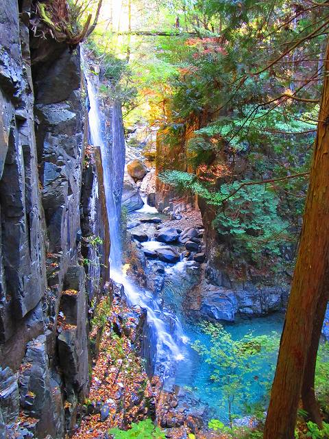 付知峡は滝と紅葉が楽しめるスポットですが、ネットでは紅葉が見頃となってましたが、色付きはイマイチ・・・