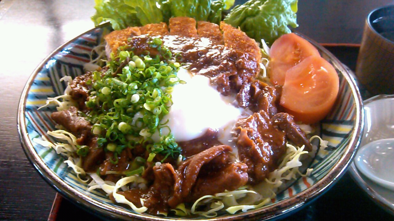 ちょっと大ぶりなどんぶりに豚カツとどてが乗っています。