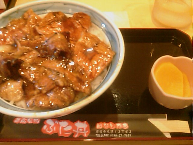 ロースとバラ肉の両方が楽しめる豚丼です。