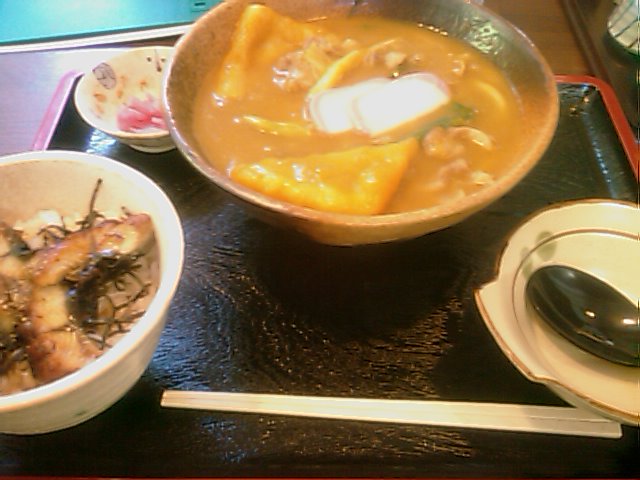寒天豚のカレーうどん 800円也 + ミニ鰻丼 350円也