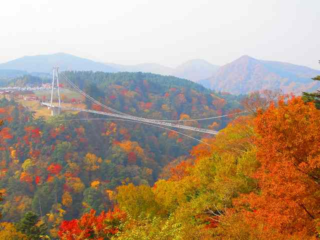 吊橋の上から見る紅葉も見ごたえがあります。