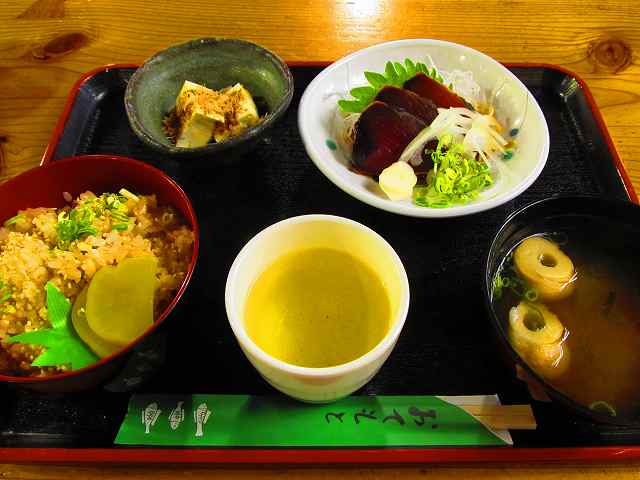 カツオ飯とカツオのたたきの高知名物の定食です。