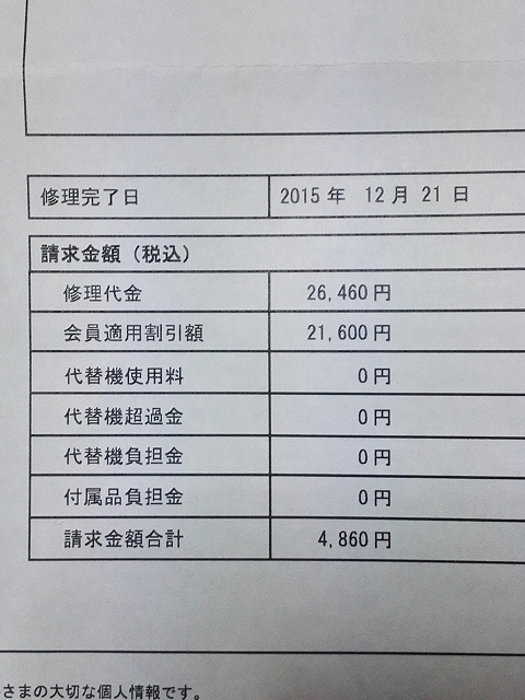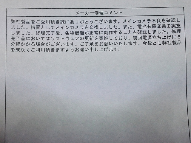 受け取り後に確認してみると・・・バッテリー以外にカメラも修理対象になってました(^^;)